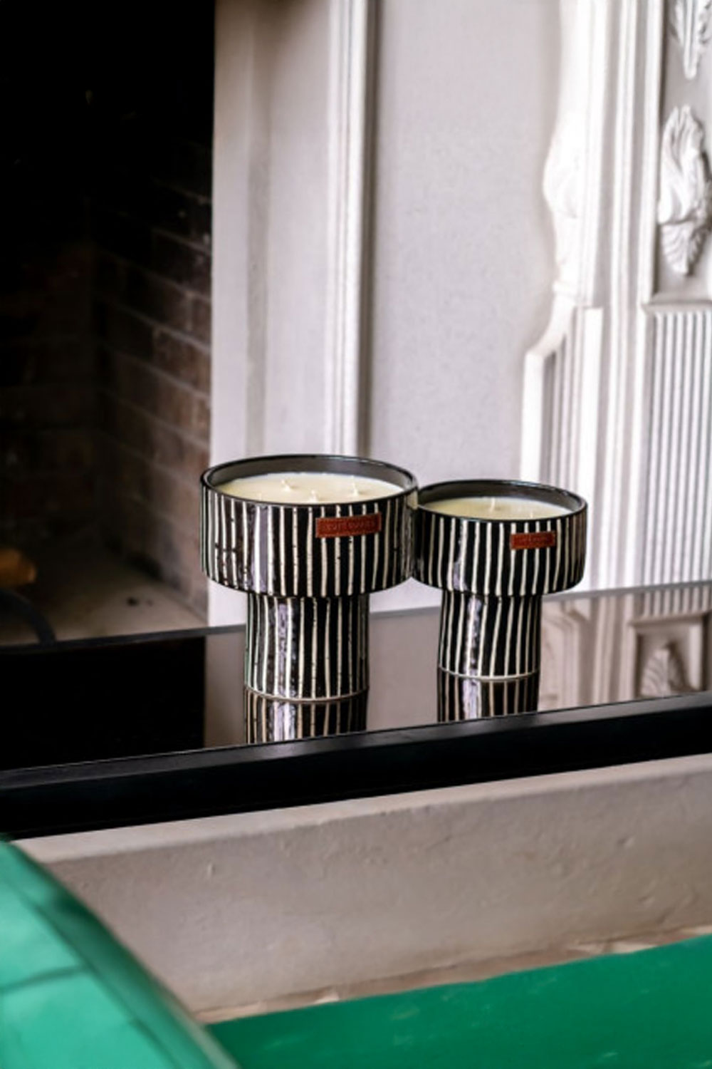 Zebra Bowl Candle — a bold, refined design piece that pairs striking black-and-white zebra stripes with the delicacy of Moroccan craftsmanship. Each ceramic bowl is hand-thrown, glazed, and painted by skilled artisans in Marrakech, making every candle truly one-of-a-kind. Filled with 100% vegetable wax and a fragrance composed in Grasse, it adds a modern accent and a luxurious scent to any interior.