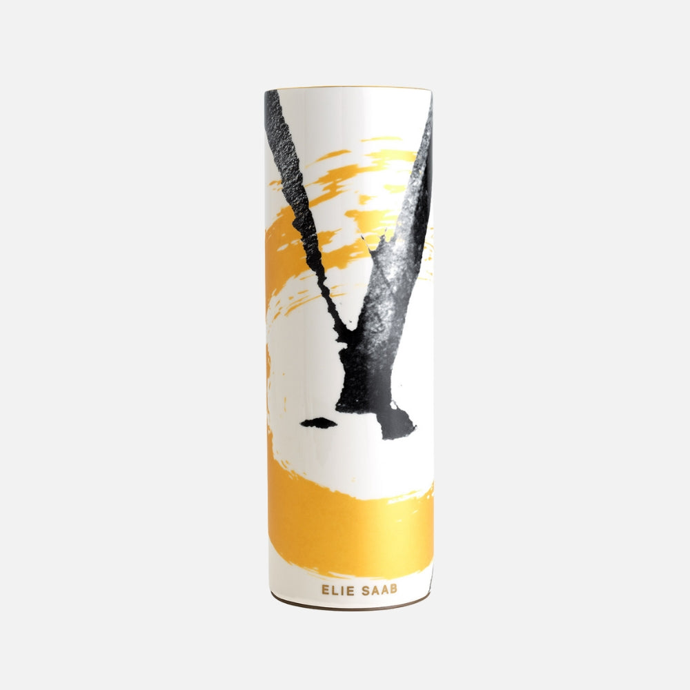 مزهرية إيلي صعب الوردية (30 سم) من مجموعة جولدن سومي-إي، تتميز بتصميم أنيق من الحبر الأسود وفرشاة ذهبية على الخزف الأبيض. بقاعدة من الجلد الإيطالي، تمزج بين الفن الشرقي والفخامة العصرية، مثالية كقطعة فنية مميزة أو كقطعة مركزية زهرية.