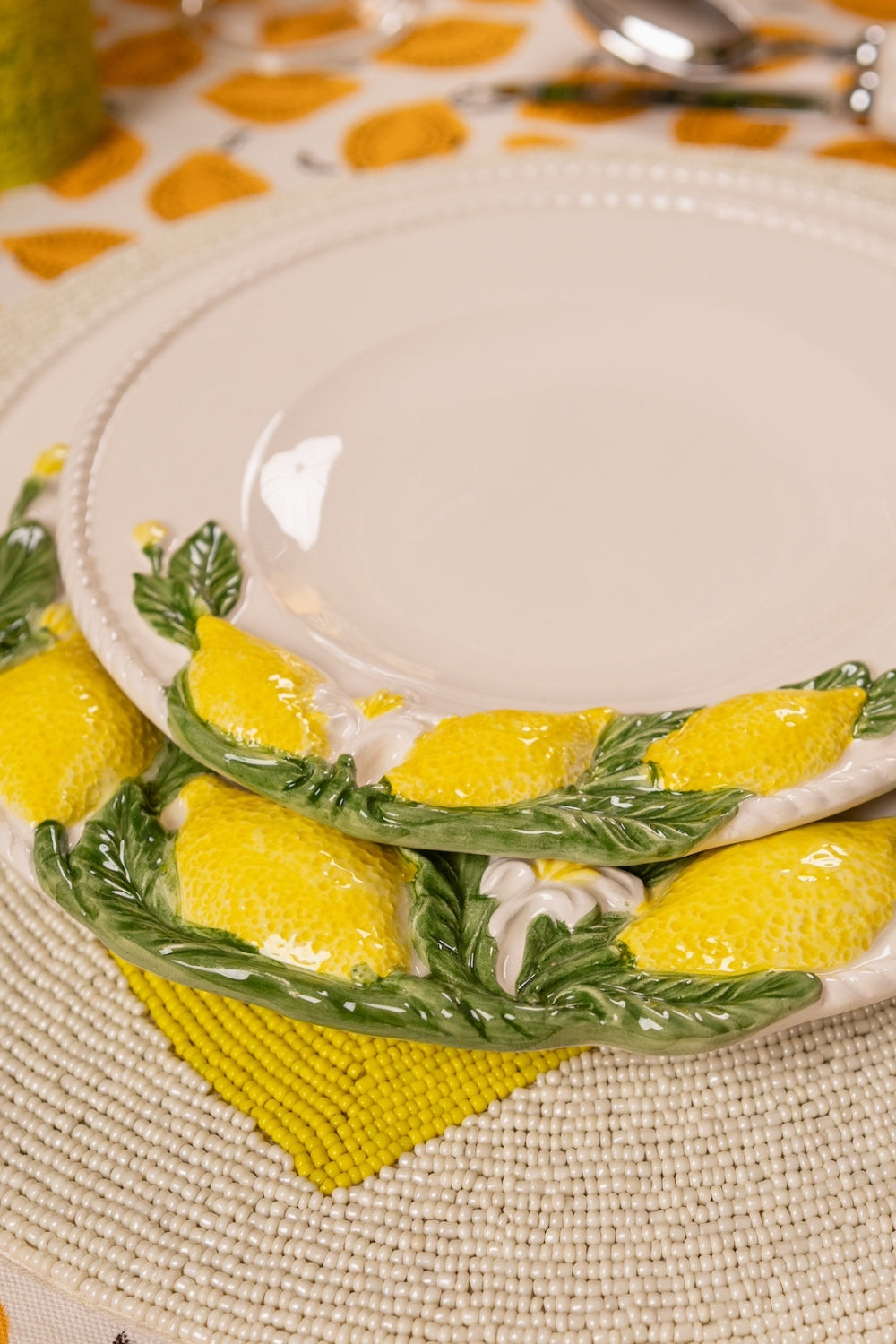Perfectly sized for salads, starters, sides, or desserts, this glossy ceramic plate layers beautifully with the rest of the Lemon Collection to create a cohesive, vibrant tablescape for everyday meals and special occasions.