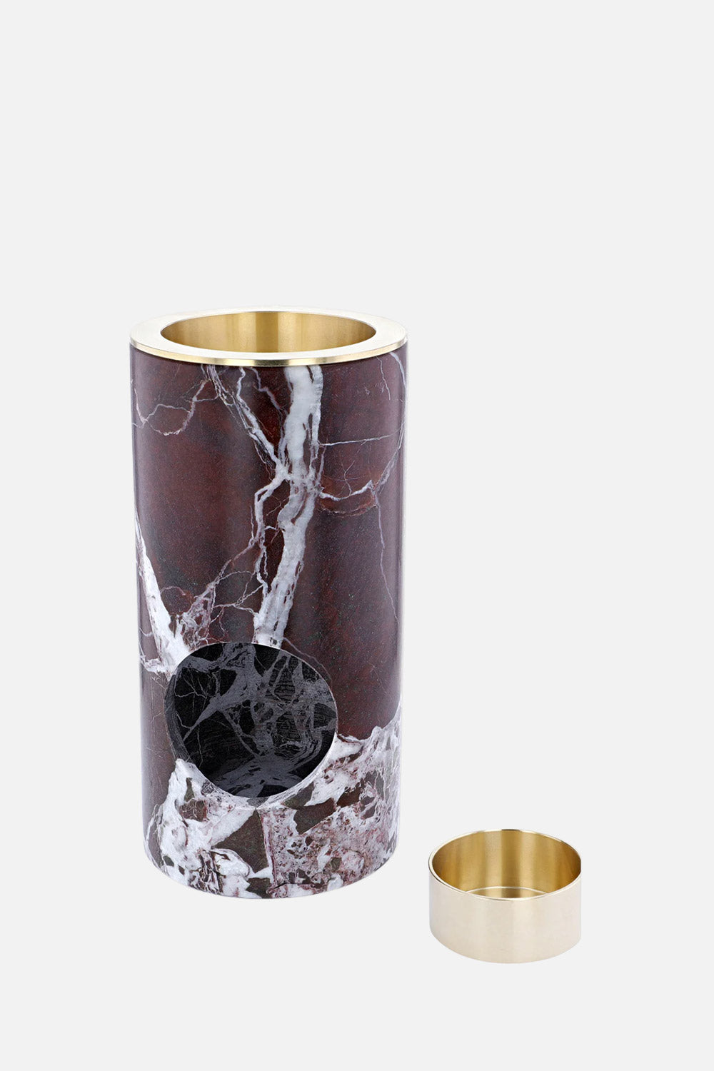 • Material: Solid Rosso Levanto marble with brass bowl & tealight holder
