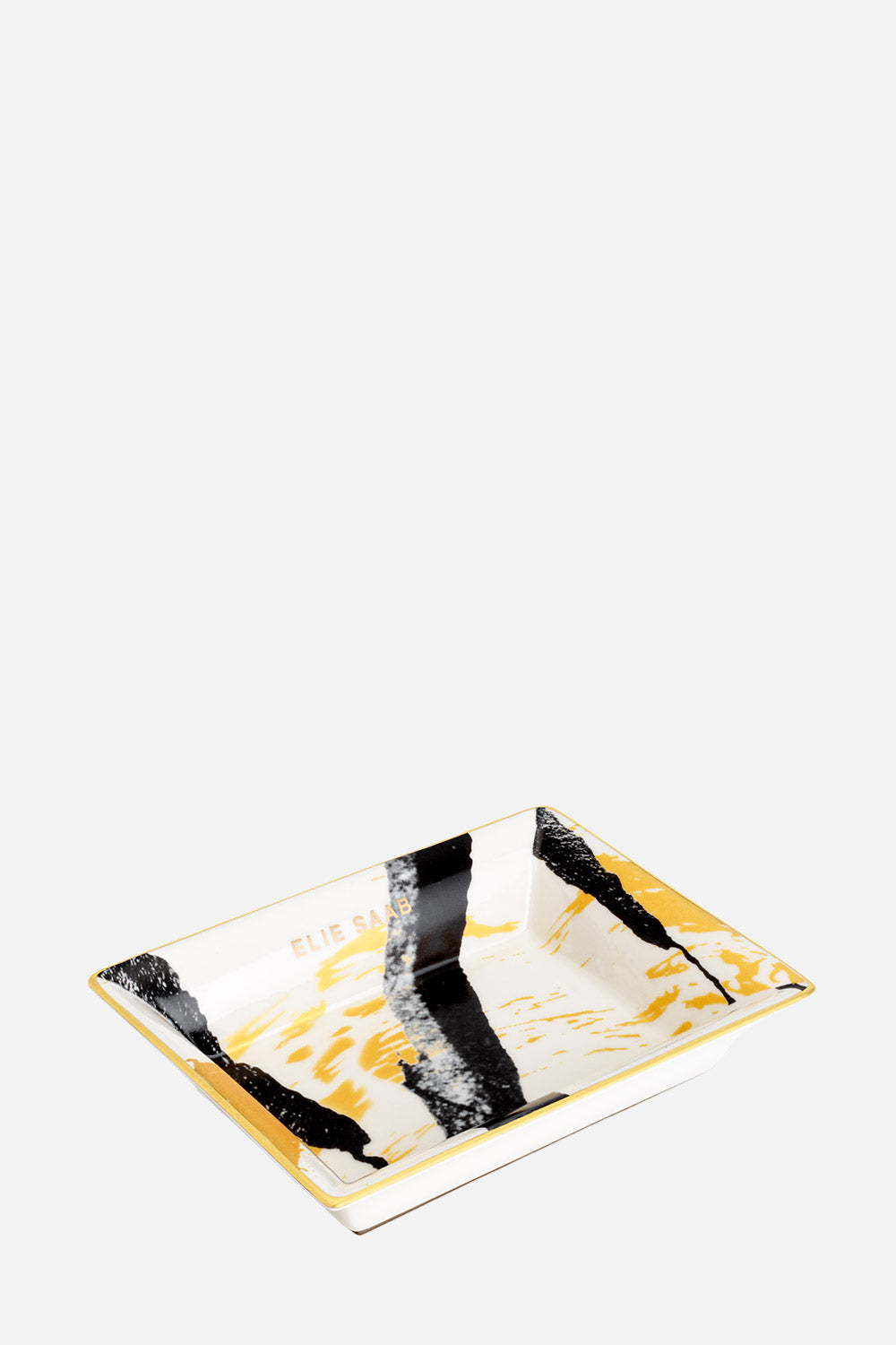 he Elie Saab Golden Sumi-e Small Vide-Poche (12x16cm) blends Japanese-inspired artistry with modern luxury. Crafted from fine black porcelain with gold brush strokes and an Italian leather base, it’s perfect for holding jewelry, keys, or coins with refined elegance.