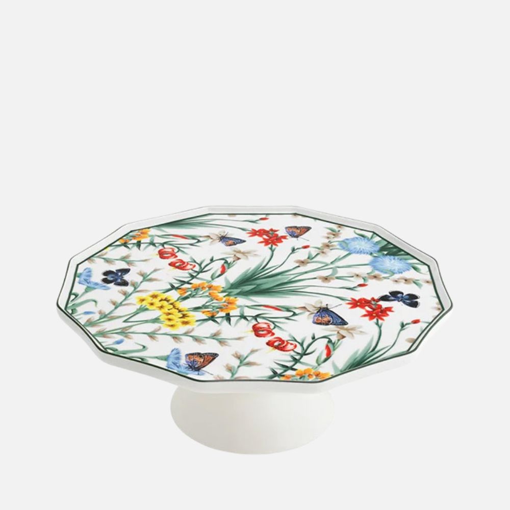 Embrace the elegance of nature with the Jardin De Papillons Footed Hexagonal Cake Platter, a masterpiece from the Timeless Collection. This striking 33 cm platter features a distinctive hexagonal shape, offering a fresh and modern twist to classic design. Crafted from premium Prime Porcelain, it presents a delightful garden scene inspired by Monets Giverny gardens, with vibrant florals that evoke the essence of a serene, blooming paradise. The white-footed base adds a touch of sophistication and stability, ensuring your cakes and pastries are showcased with unparalleled grace. Its unique geometric form and radiant floral motifs transform any dessert into a work of art, making it perfect for elegant soires and intimate gatherings. Housed in a luxurious RAK Porcelain branded gift box, this platter makes an exquisite gift for those who appreciate artistry and refined design. Elevate your table setting with the Jardin De Papillons Footed Hexagonal Cake Platter and celebrate every occasion with a touch of garden-inspired opulence.