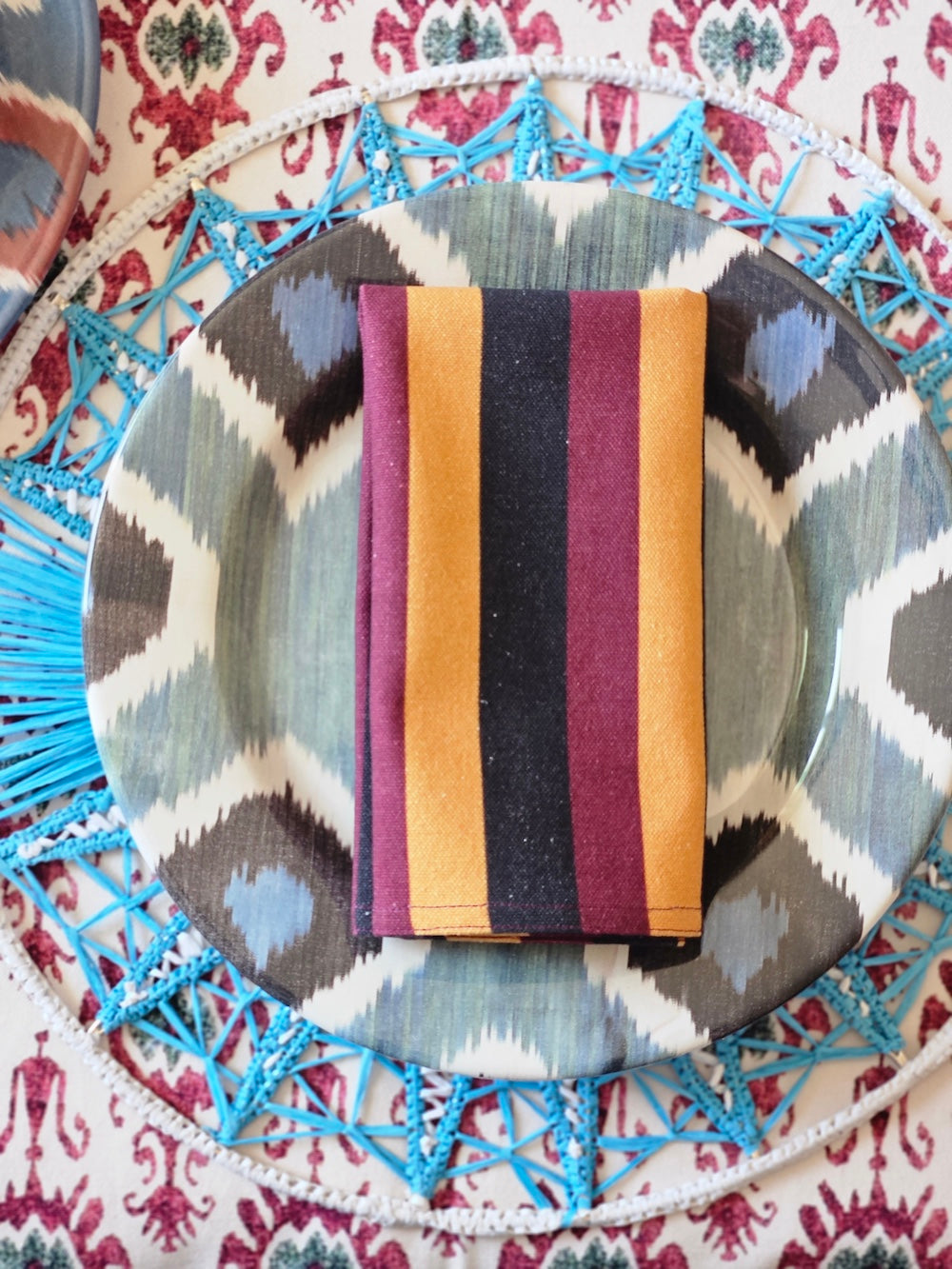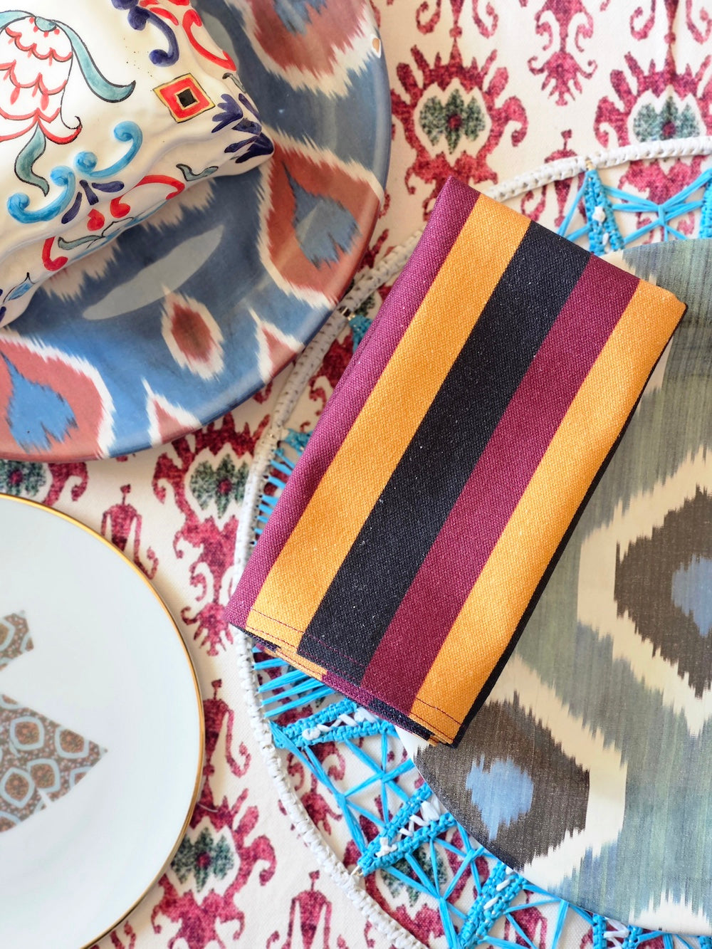 Elevate everyday dining or outdoor entertaining with these cheerful hand-printed cotton napkins—where sustainability meets artisan style.
