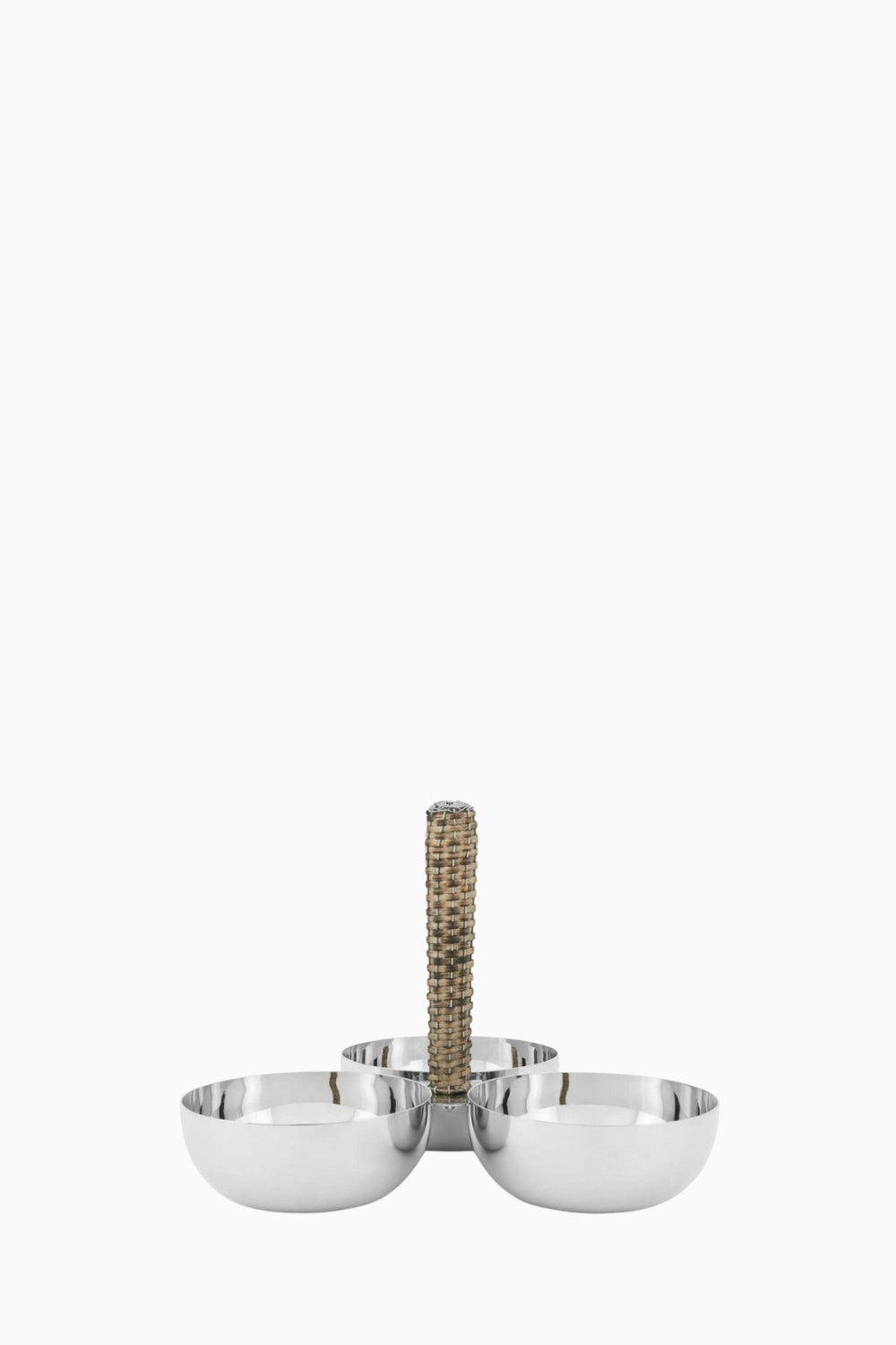 Serve in style with the Hermiwicker Buffet Stand, a stunning three-tier display crafted from durable aluminum and accented with elegant wicker decorations. Perfect for showcasing appetizers, desserts, or fruits, this buffet stand adds a sophisticated touch to any dining or entertaining setup.